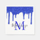 Sparkle Royal Blue Glitter Drips Monogram Napkin