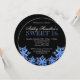 An elegant winter wonderland sweet 16 birthday party invitation. Featuring faux glitter sparkle snowflakes. Designs are flat printed graphics - NOT ACTUAL GLITTER. Shown in blue and black.