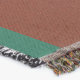 A quality printed throw has its advantages. This is a much finer weave throw than its loopier cousins, and though lighter, it is worth the investment for custom room accessorizing. The back is much prettier than the typical brown, and the fringe on the long sides very vivid, the selvage nicely done. Before photographing, I washed the throw in cold water, delicate, with a thicker woven throw the same size. On tumble dry low, this throw was dry in half the time as the other. This is a very practical quality if you use throws for furniture covers or to wrap up in frequently. The sleekness of the fabric makes it a great layer for accenting or protecting without the feeling of sitting on too much stuff. Perfect for napping or when you feel a light chill coming on. The color printing is beautiful and on this fabric, matched the design and color of my Photoshop image. This is an advantage for blending room fabrics and colors. The fringe on the short sides prints the colors from the design image and therefore varies from the side fringe. I streaked a white fractal line through the plaid pattern to give the illusion of weaving. This printed as crisp as an illusory thread, and put some white in the short side fringe, showing another advantage of print vs loomed- for artistic purposes, line lines, detail, and color integrity can be planned and preserved. My loomed throws have color limitations and more of a needlepoint texture. Print throws reproduce an exact image. The throw felt a little stiff straight out of the package, but this went away in the first delicate wash. Of course I searched the wash water for ink or bleeding and there was none.
