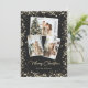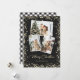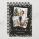 Sparkling black and white buffalo plaid photo Christmas card featuring a sparkly calligraphy greeting, gold snow, stars and Christmas magic lights on the front. A black and white buffalo plaid background with faux gold foil snow at the back. Easily personalise these sparkly photo Christmas card with your photos, text and the family name. Create magical photo Merry Christmas card for your family and friends this holiday season.