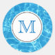 Sparkling Blue Swimming Pool Water Monogram Classic Round Sticker