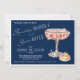 Fancy happy hour invitation that remains easy to update with your particulars. Features a "sparkling" glass of bubbly champagne with a delicious looking treat next to it. Beautiful font reads "Sparkling Bubbly and Savory Bites" in the middle, all placed on a dark blue background to make it "pop". Reverse side is a complementary white and champagne-coloured stripe design.