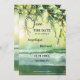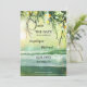 Christmas Wedding Save the Date Card featuring a teal green beach with sparkling lights on pine twigs. On the back is space for your own photo. You can use the QR code template to link to your own website.