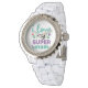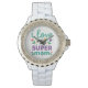 Sparkling Diamond Bezel Super Mom White Link Watch