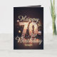Celebrate seven remarkable decades with this beautifully crafted greeting card. It has a dark background with a sparkling, glittery design that gives it an elegant and festive feel. The text reads "Happy 70th Birthday" and a placeholder name in a mix of cursive and bold fonts, with the number "70" prominently displayed in the centre. The number has a shiny, reflective pattern, making it stand out. Surrounding it are decorative elements like stars, musical notes, and light reflections, adding to the celebratory atmosphere. The front and inside text are fully customisable, allowing you to personalise every detail. Need it quickly? Opt for an instant digital download for easy sharing. Make their 70th birthday truly unforgettable with a card as unique as their journey.