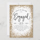 Celebrate the newly engaged couple with this stylish engagement party invitation that features a sparkling gold glitter frame and modern hand lettering.