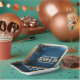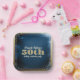 This blue plates features gold glitter flecks. The deep blue background contrasts with the gold accents. The glitter catches the light, adding a touch of sparkle. The combination of blue and gold sets a luxurious tone for any event.