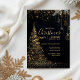 Illuminate your holiday celebration with this enchanting invitation featuring a magnificent gold sparkle Christmas tree adorned with hanging ornaments against a magical starlit black background. Golden decorative elements and festive snow create an atmosphere of luxury and wonder, ideal for elegant evening parties and sophisticated seasonal celebrations.