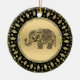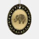 An elegant gold sparkling circle frame with a black floral paisley elephant.