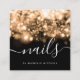 Elegant, Feminine & Modern, Sparkling Gold Lights element w/ Script - Personalised business card template design. Great for hairstylists, makeup artists, lash estheticians, nail specialists and more.