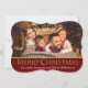 Sparkling Gold Merry Christmas on Red Fancy Photo Holiday Card