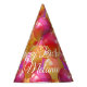 Birthday Party Hat - Sparkling clear sunset colours of yellow gold, raspberry pink, coral and hints of violet balloons Design by WhimsicalArtwork™ perfect for birthday parties, graduations, baby showers, anniversaries, New Year's Eve or any celebration party - change the text or remove it completely