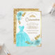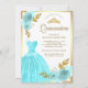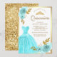 Sparkling Gown Aqua Blue Floral Gold Quinceanera Invitation
