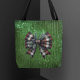 Sparkling Green Big Plaid Black Bow Tote Bag