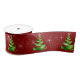 Sparkling Green Ribbon Christmas Trees On Red Satin Ribbon