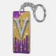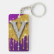 Sparkling Letter V With Gold Glitter Drip Key Ring