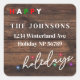 Send your holiday correspondence in style with this festive Happy Holidays 1.5-inch square return address label. This design features a colourful sparkling lights on a dark wood background. Make it a complete set with the matching 5 x 7 photocard. Please feel free to contact me through the message feature if you need assistance with this design or if you'd like to add different customisation. Or you may contact me via email at zazzlestores@yahoo.com. Artwork created by Home For The Holidays.