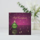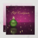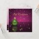Glamourous Christmas illustration featuring a green Christmas ball with golden elegant script Merry Christmas lettering and gold pearls on a purple bokeh background with sparkling stars.