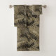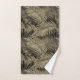 Turn the glam up a notch with this unique tropical print of overlapping palms leaves in a seamless pattern that adds a little sparkle and depth of shadows to the lush foliage. This striking bath towel design set is glittering shades of beige gold on a dark, chocolate brown background. Search ID831 to see other colour options and additional products with this design.