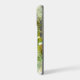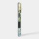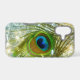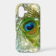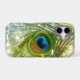 Glamourous holiday iPhone case with beautiful peacock feather, shiny silver tinsel and sparkling lights