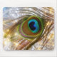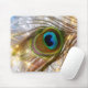 Trendy mousepad with beautiful peacock feather, silver tinsel and sparkling lights