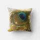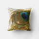 Glamourous holiday throw pillow with beautiful peacock feather, silver tinsel and sparkling Christmas lights