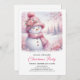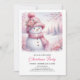 Sparkling Pink Snowman Kids Christmas Invite Digit