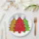 Sparkling red gold green Christmas tree snowflake Paper Plate