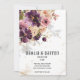 A modern and elegant burgundy purple and mauve watercolor floral bouquet with it's shadow softly spilling onto the invitation and sparkling gold splashes and elements, with your first names in a modern font with a numerical wedding date underneath and a small font for the details. This luxury violet purple and mauve invitation is suitable for any occasion.