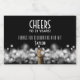 Cheers to 21 Years and Happy Birthday on these mini sparkling wine bottle labels that feature the top of a sparkling wine bottle and blurred white lights on a black background. MATCHING items in our store.