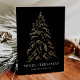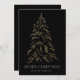 Modern & elegant holiday card featuring a snowy faux gold foil pine tree with a black background (or color of your choice). "Merry Christmas" is displayed in a white, modern serif font with your name or custom text below. The non-photo holiday card reverses to display three golden pine trees with your custom message below in white text. This design is perfect to use as your family Christmas card or business/corporate holiday card.