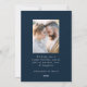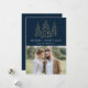 Modern & elegant holiday card featuring your photo complimented by three snowy faux gold foil pine trees with a navy background (or color of your choice). "Merry Christmas" is displayed in a white, modern serif font with your name or custom text below. The photo holiday card reverses to display an additional photo with your custom message below in white text.