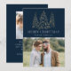 Sparkling Winter Pine Navy Merry Christmas 2 Photo Holiday Card