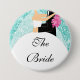 Sparkly Bride Bridal Party Button / Pin Turquoise