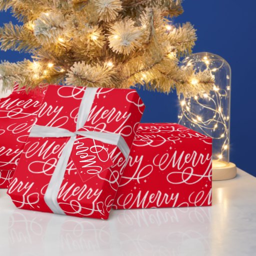 This fun, festive wrapping paper features a hand lettered "merry" greeting. Perfect for the Christmas season! Please DM if you have any requests. Thanks for visiting my Zazzle store!