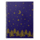 Sparkly Christmas tree, christmas spruce, stars on dark blue on photo notebook.