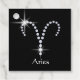 Sparkly glam design features the zodiac / astrological symbol for Aries in (faux) diamond rhinestones with white text on black background.