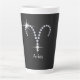 Sparkly glam design  features the zodiac / astrological symbol for Aries in (faux) diamond rhinestones with white text on black background.