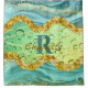 This elegant and trendy design features water droplets with a gold, turquoise and green emerald ombre/gradient. It also has a faux gold glitter decorating the design. You can simply personalize & customize by quickly adding your initial and name.