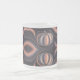 This Sparkly Halloween Mug features a glowing pumpkin on a blue background with flowing copper and navy blue waves. The pumpkin is in metallic silver and coral pink, with a glossy surface that creates a magical, ethereal effect. Small golden stars are around the pumpkin, creating a celestial atmosphere. The mug is a pretty sparkly celestial holiday mug. The mug meets the FDA requirements for food and beverage safety.