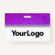 Faux purple and black glitter sparkles delightfully behind a photo template with black and white frame. Easily update the name and professional job title for each custom employee badge. There is also space for a company logo—delete to leave blank. Backside features more faux glitter and an image template perfect for employee bar codes. Available in many other styles and colours.