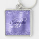 Sparkly Glittery Periwinkle Foil Fancy Monogram Key Ring