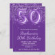Sparkly Glittery Royal Purple Number 50 Birthday Invitation
