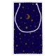 Sparkly gold Christmas moon, stars on blue Small Gift Bag