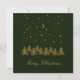 Personalise, Golden sparkle Christmas tree, christmas spruce, moon, stars on dark green on greeting card.