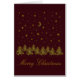 Personalise, Golden sparkle Christmas tree, christmas spruce, moon, stars on dark red on greeting card.