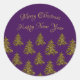 Sparkly gold Christmas tree on purple Christmas Classic Round Sticker