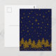 Sparkly Gold Christmas tree, stars, snow on blue Postcard
