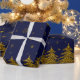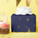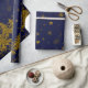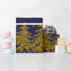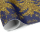 Sparkly Gold Christmas tree, stars, snow on blue Wrapping Paper