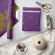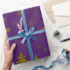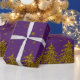 Sparkly Gold Christmas tree, stars, snow on purple Wrapping Paper